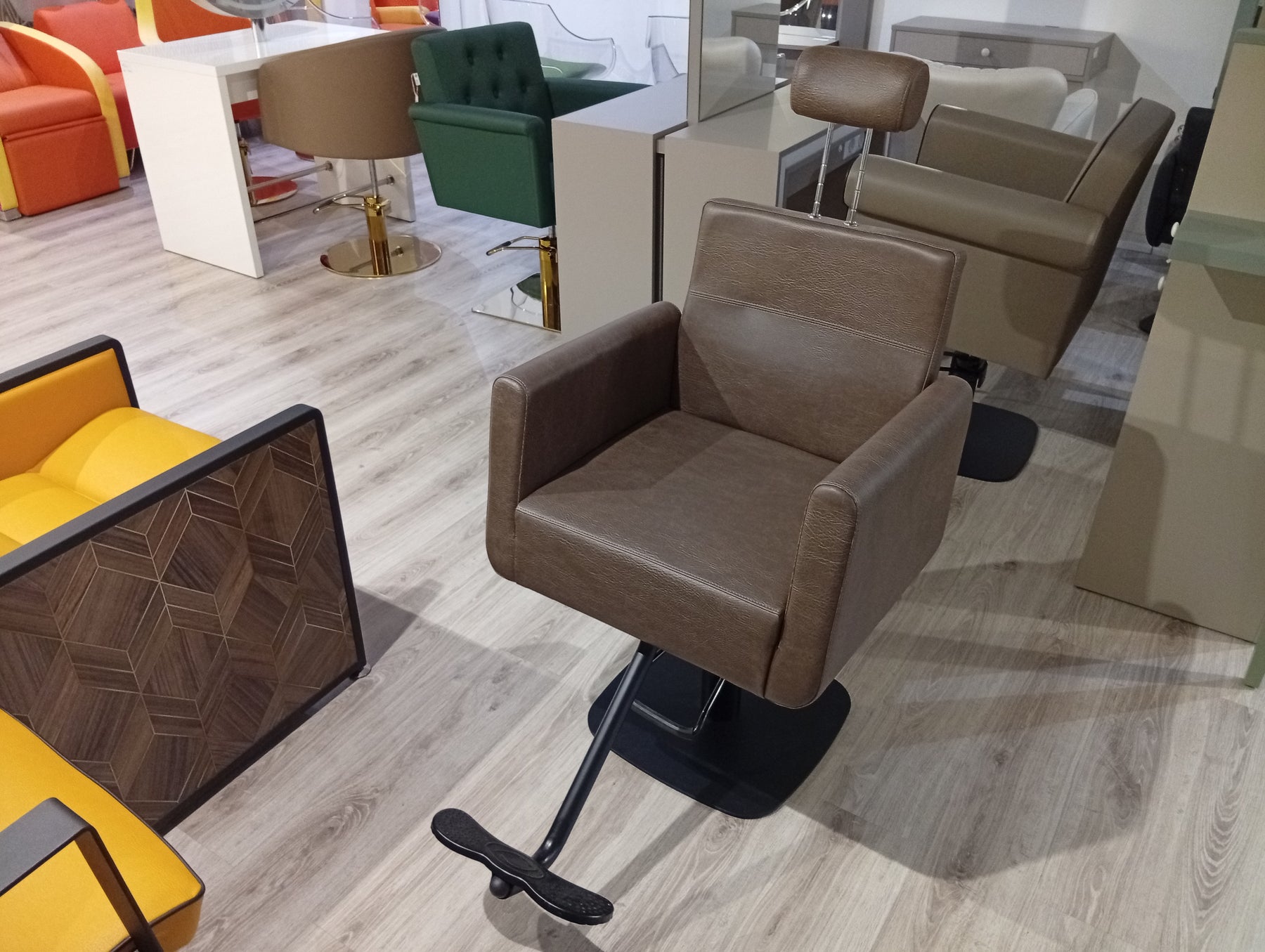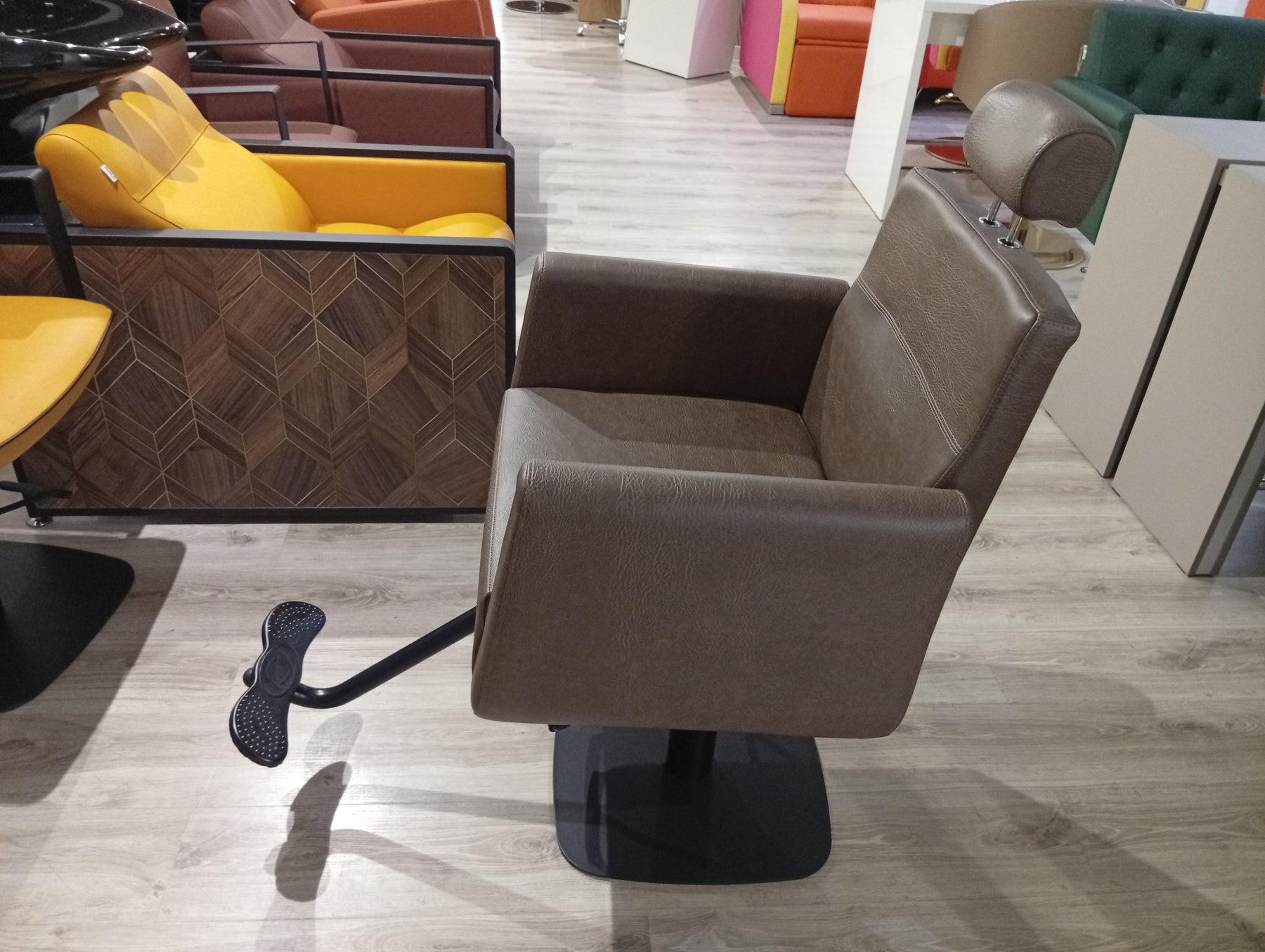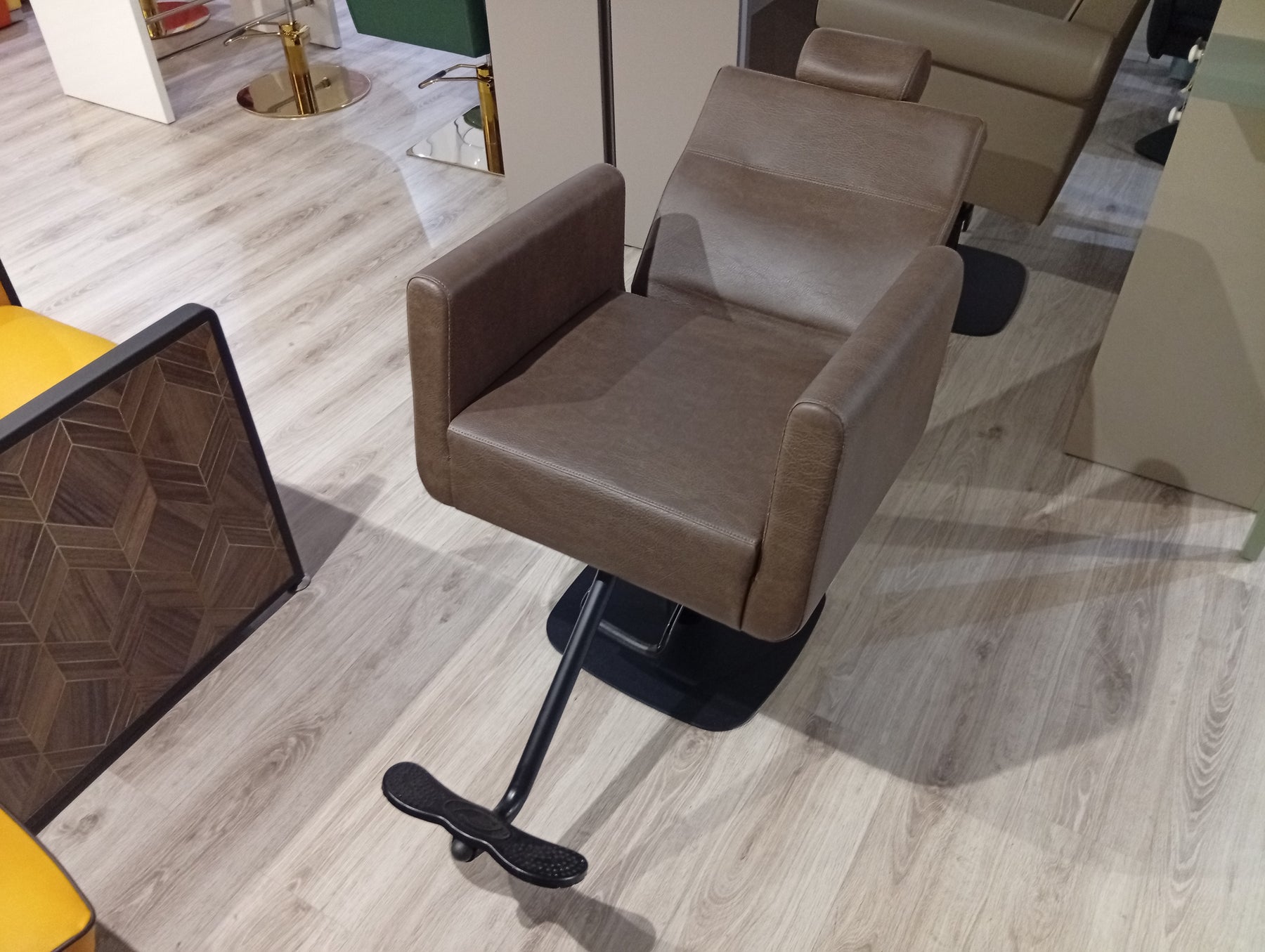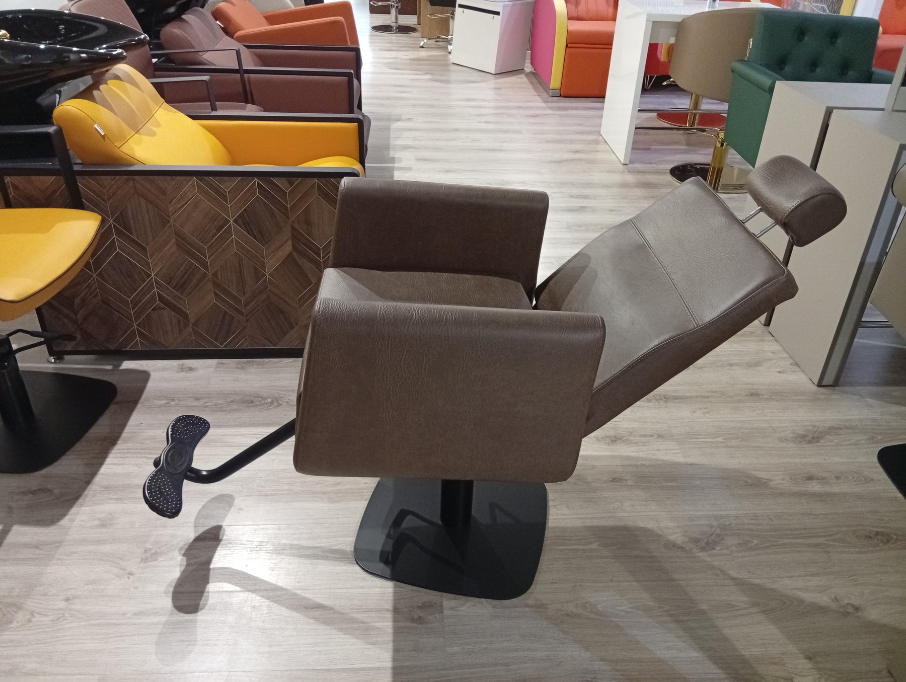 Der Express Line Jack vereint Vielseitigkeit und Ergonomie für moderne Salons. Dieser multifunktionale Stuhl eignet sich gleichermaßen für klassische Haarschnitte, Make-up-Anwendungen und Barbier-Services. Die konturierte, verstellbare Rückenlehne und integrierte Kopfstütze bieten optimale Unterstützung – besonders wertvoll für spezialisierte Behandlungen wie Augenbrauen- und Wimperndesign. Eine durchdachte Lösung für Beauty-Salons, die verschiedene Dienstleistungen unter einem Dach anbieten und dabei höchste Kundenzufriedenheit gewährleisten möchten.