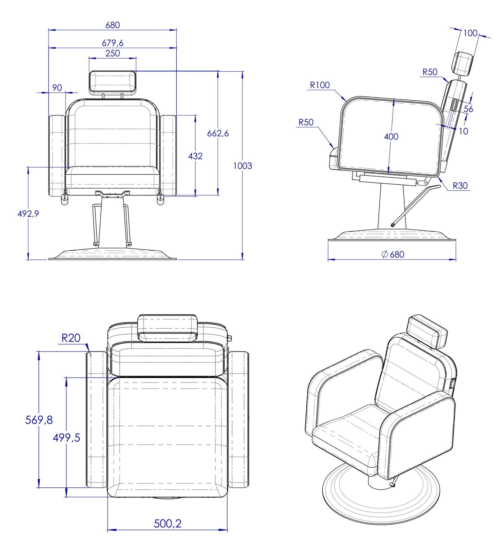 Der Express Line Jill besticht durch seine Premium-Ausstattung: feuerhemmender PU-Leder-Bezug mit hochverdichteter Schaumpolsterung für maximale Strapazierfähigkeit und schnelle Wärmeableitung. Die stabile 15-mm-Spanplatten-Konstruktion wird von einer runden Edelstahlbasis getragen und hält Belastungen bis 200 kg stand. Die hydraulische Höhenverstellung mit integrierter Bremse garantiert sichere Positionierung, während die ergonomische Rückenlehne – verstellbar, (Kopfauflage abnehmbar) und bis 35° neigbar – höchsten Komfort bietet. Mit 100.000 Martindale-Zyklen zertifiziert für professionelle Dauerbeanspruchung.
