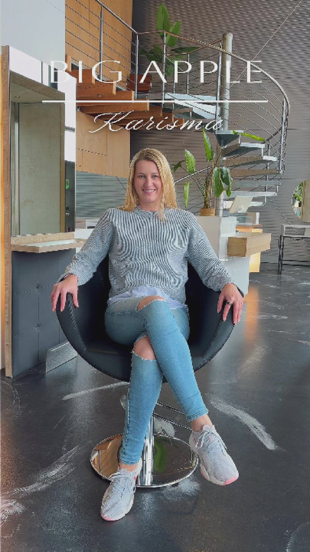 Friseurstuhl Big Apple II - Oberteil komplett in hochwertigen Kunstleder welches eine wesentlich geringere Pflege benötigt im Vergleich zu Echtleder. Das Unterteil ist ausgestattet mit blockierbarer Hydraulikpumpe. Der runde Tellerfuss ist ist 7 Farben lieferbar, standard ist hochglanz poliert. Dank rundem Tellerfuss können Sie problemlos mit Rollhocker arbeiten.