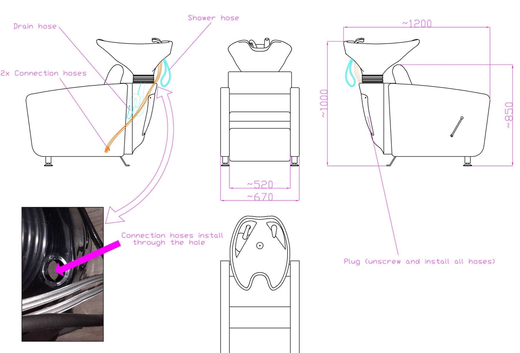 CDE Salondesign Waschanlage Checker, Becken kippbar , Fussauflage manuell