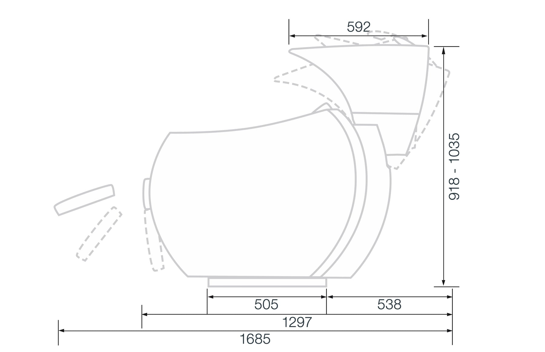 Neues Modell Metallsockel und Verkleidung unter Becken nur in schwarz erhältlich. Tondolore der neue GREINER-Waschsessel begeistert. Konzentrische Radien greifen harmonisch und dynamisch ineinander - Korpus und Becken, weich und hart verschmelzen zu einer Einheit. tondolore gibt es mit "Wellness- Ausstattung": Mit elektrisch verstellbarem Beinpolster und/oder Massageeinrichtung in der Rückenlehne. Das Becken ist wahlweise schwarz oder weiß. Das Sitz / Rückenpolster lässt sich mit einem Handgriff komplett abnehmen, so dass der Innenraum mit Installation und Befestigungselementen der Waschanlage frei zugänglich ist.